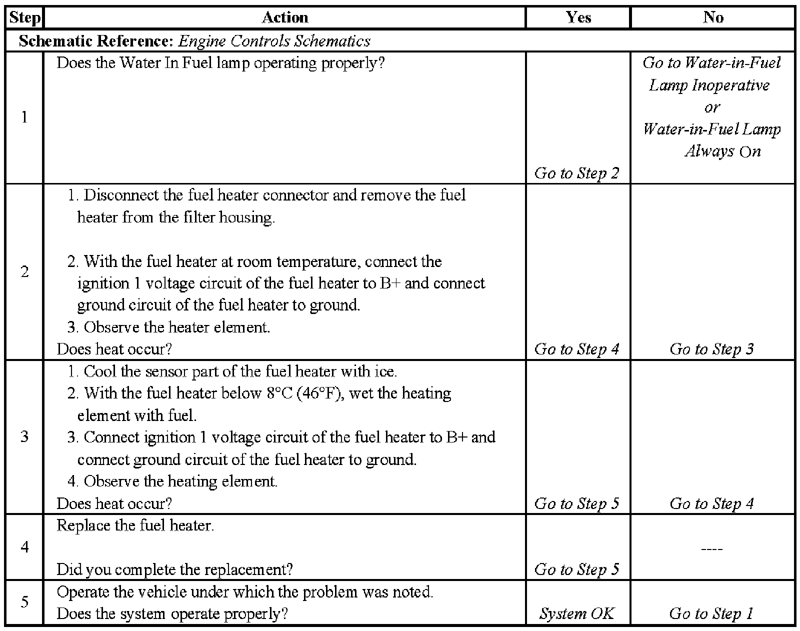 2. This step checks for a fuel heater that is stuck ON.