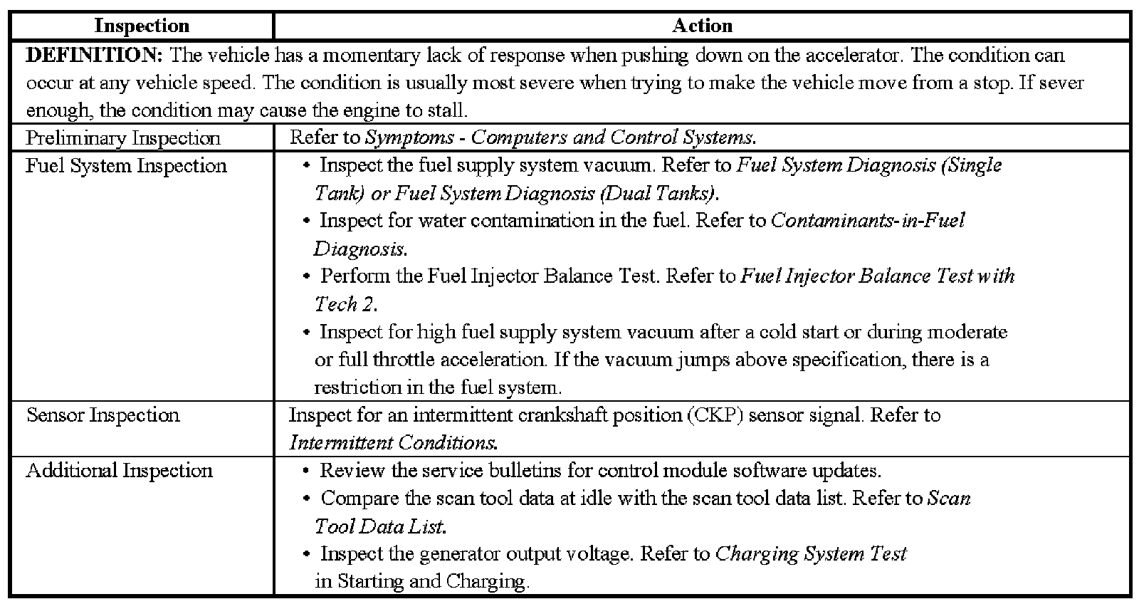 Hesitation, Sag or Stumble