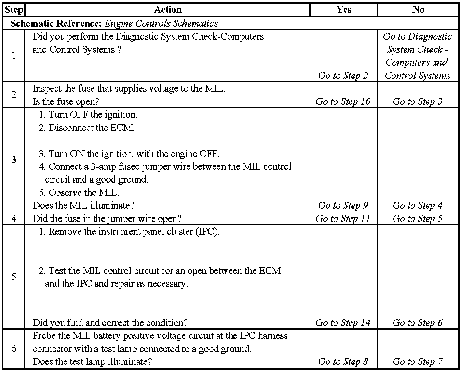 Malfunction Indicator Lamp (MIL) Inoperative - Steps 1-6: