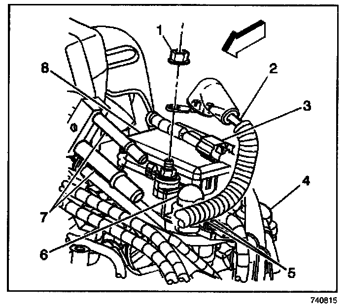 9. Remove the glow plug relay from the mounting studs.