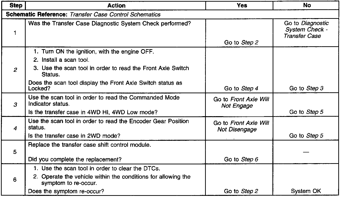 4. This step helps determine if the front axle will not disengage.