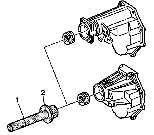1. For the C 3500 HD model and the C model, using the J 38807 (1) and the J 8092 (2), install the rear output shaft rear bearing in the transmission extension.