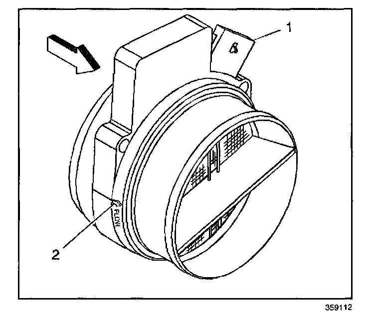 1. Locate the air flow direction arrow (2) on the MAF/IAT sensor.
