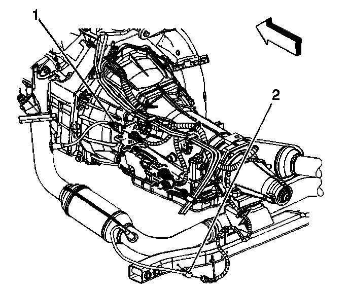 10. Disconnect the oxygen sensor electrical connectors (1, 2).