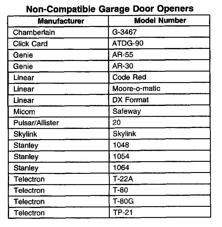 NON-COMPATIBLE GARAGE DOOR OPENERS