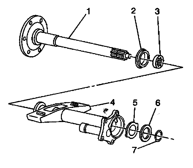 4.3. Install the retaining ring (7) into the inner axle shaft (1).
