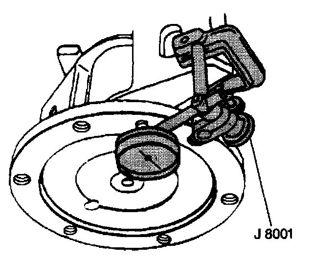 4.1. Install the J8001 or the equivalent on the axle tube end. The plunger of the indicator must be at a right angle to the axle flange.