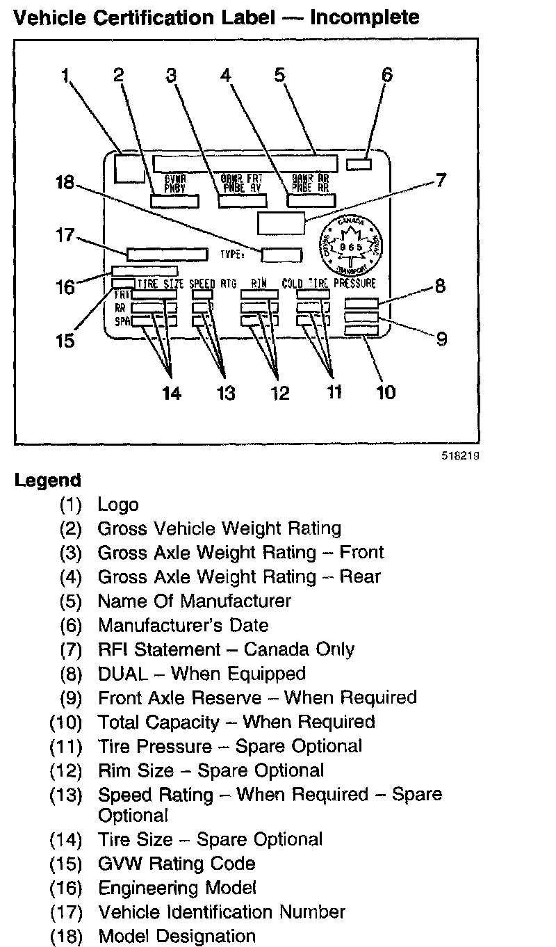 Vehicle Certification Label - Incomplete: