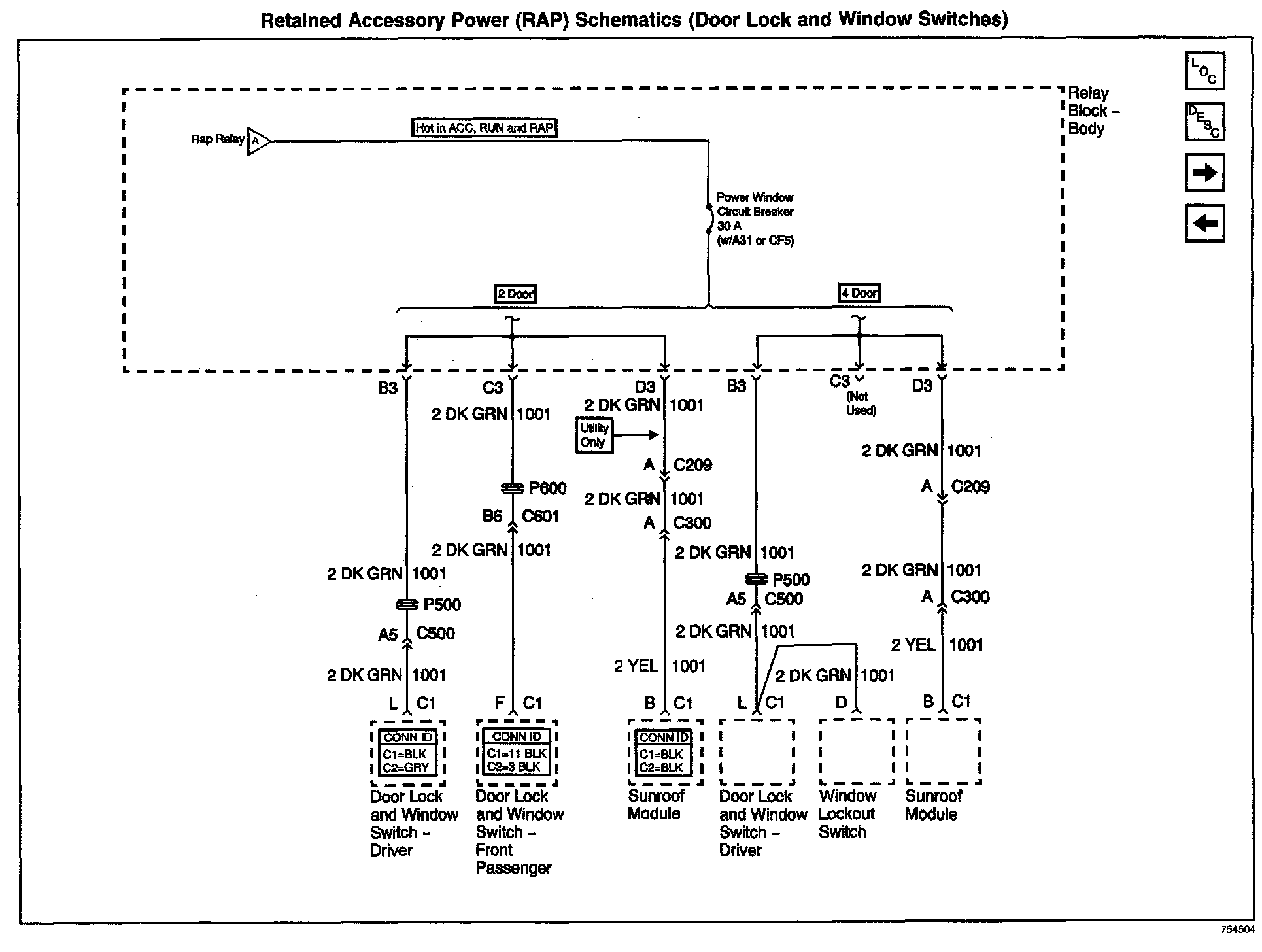 Retained Accessory Power (RAP) Schematics: Door Lock And Window Switches: