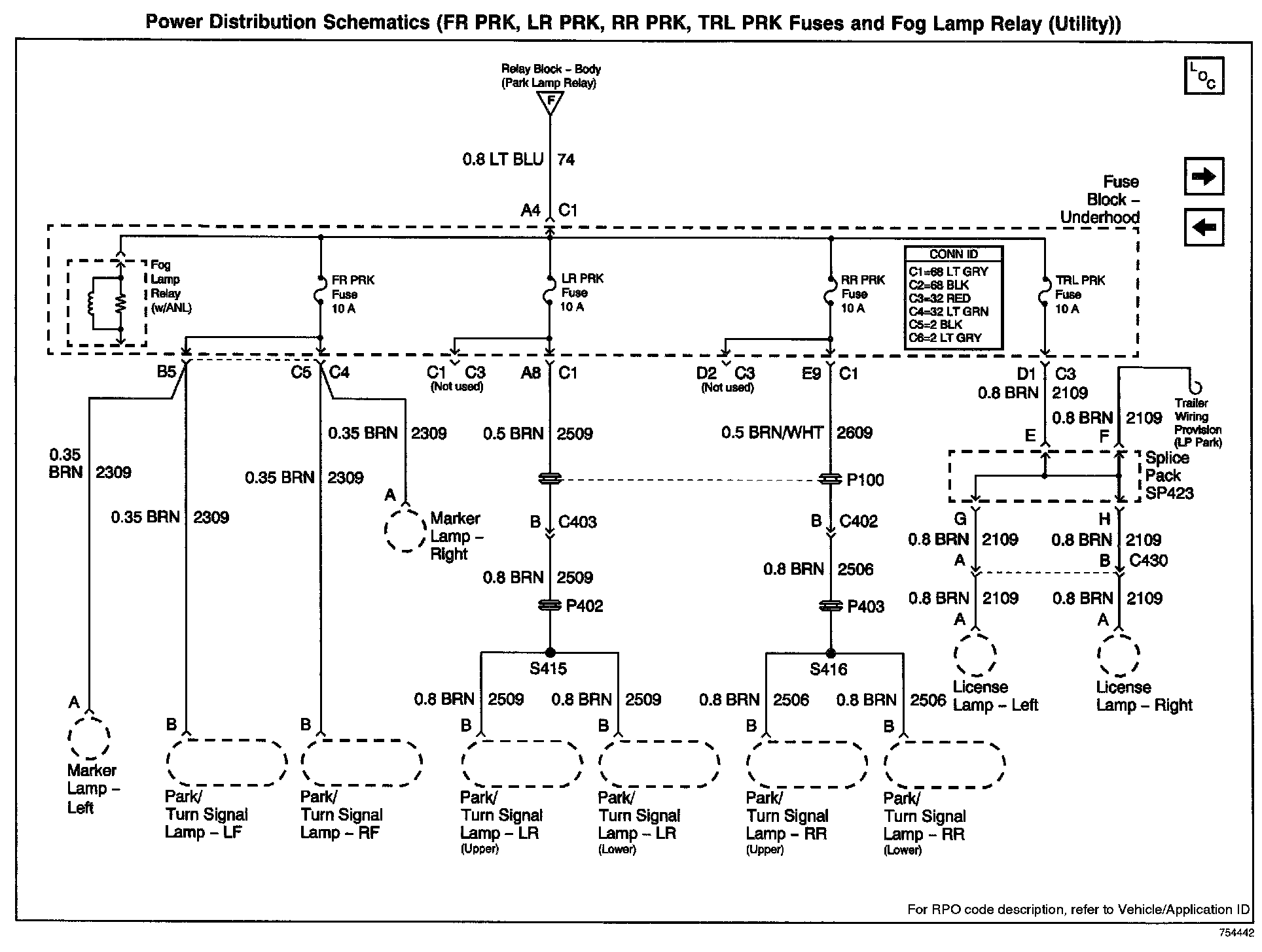 FR PRK, LR PRK, RR PRK, TRL PRK Fuses And Fog Lamp Relay (Utility):
