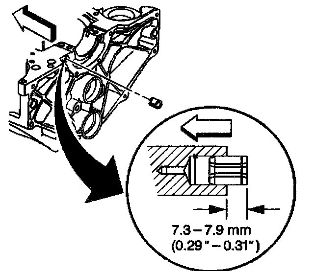 A properly installed front engine oil gallery plug must be installed slightly below flush with the front face of the engine block.