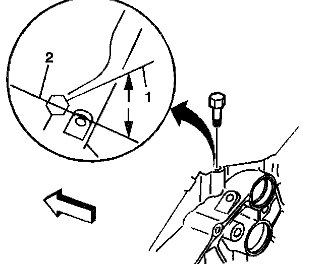 A properly installed engine block core hole plug must be installed flush or below the bottom of the chamfer (1) of the engine block core hole.