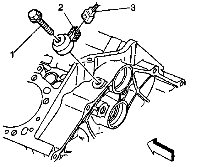 18. If reusing the engine oil pressure sensor fitting, apply sealant GM P/N United States 12346004, GM P/N Canada 10953480, or equivalent, to the threads of the engine oil pressure sensor fitting.