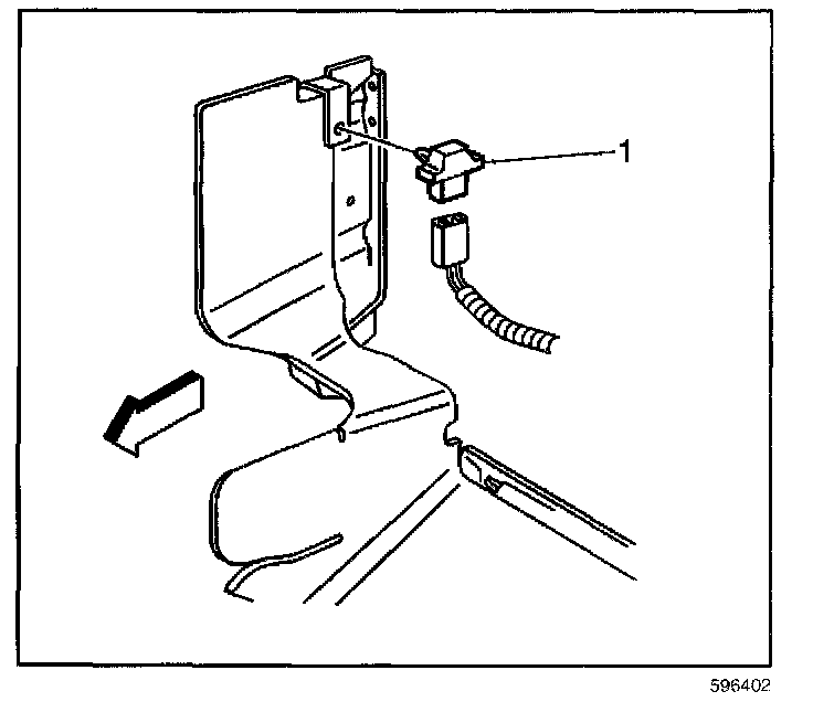 1. Install the ambient air temperature sensor (1) to the right hand side of the radiator support baffle.