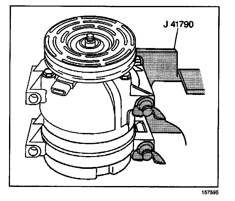 2. Clamp the A/C compressor holding fixture, J 41790 in a vise and attach the A/C compressor to the J 41790.