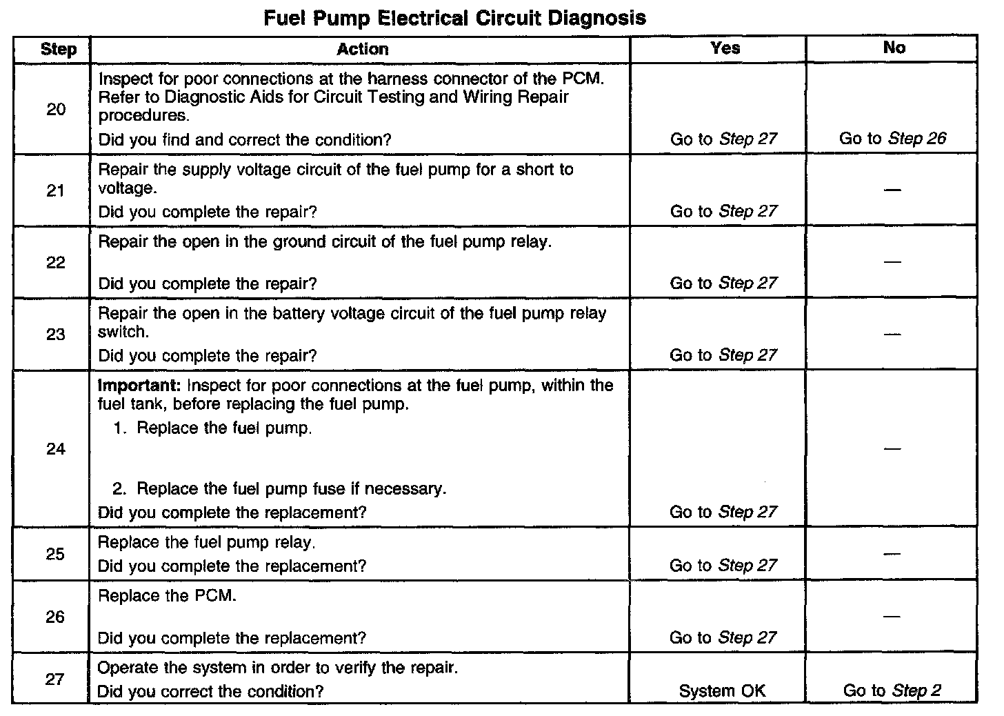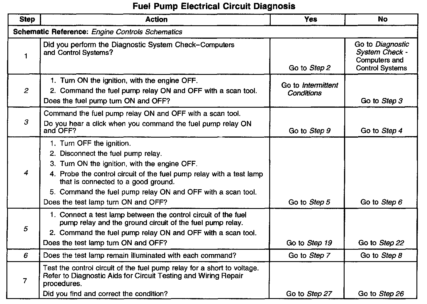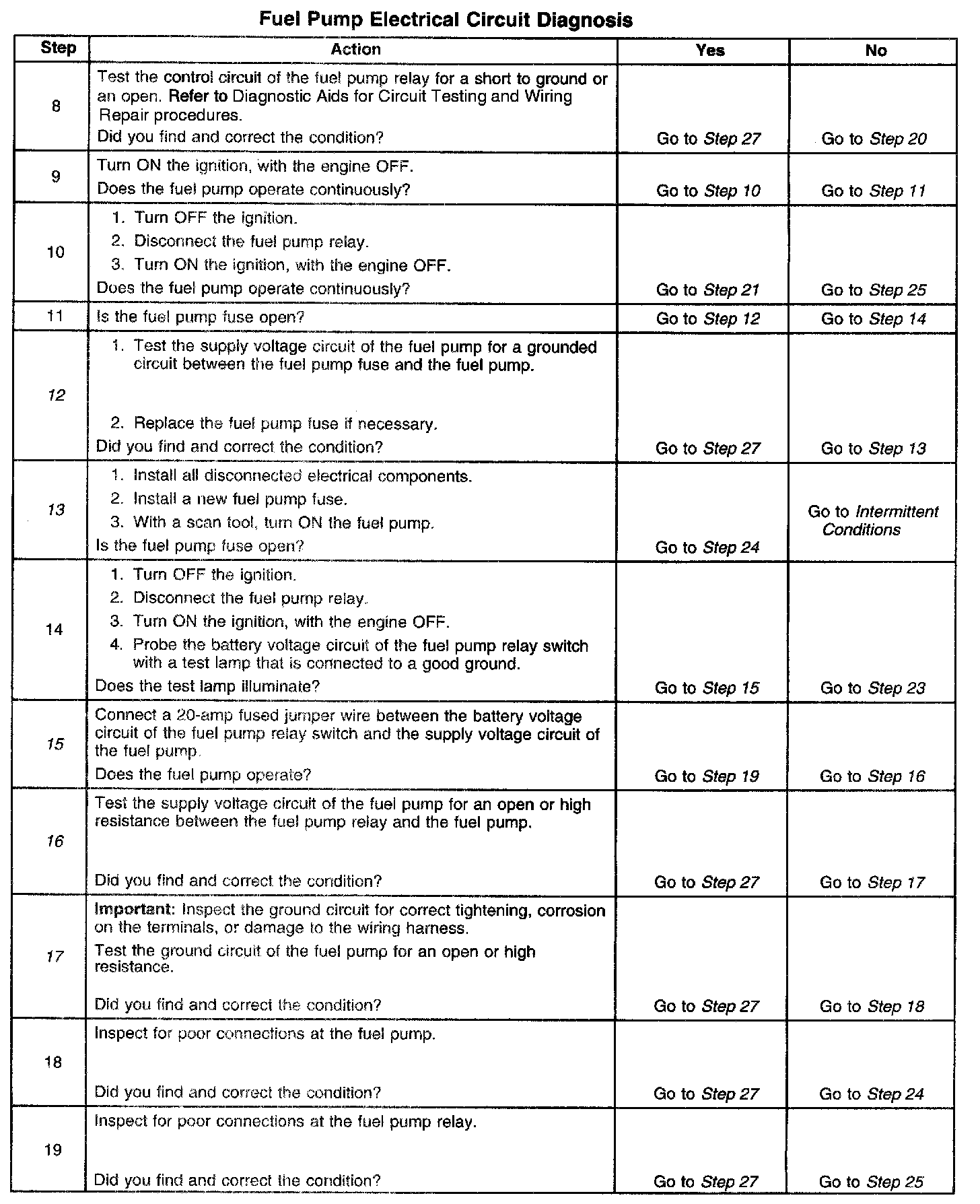 Fuel Pump Electrical Circuit Diagnosis