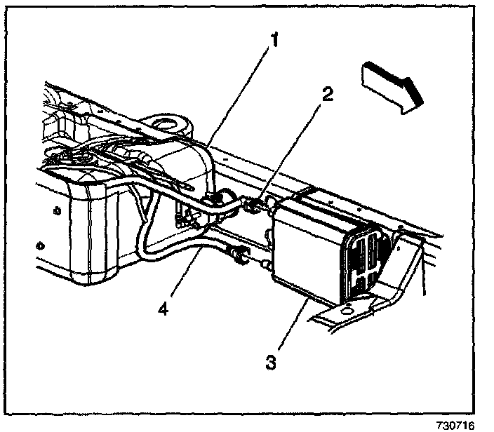 The canister (3) is filled with carbon pellets used to absorb and store fuel vapors. Fuel vapor is stored in the canister until the control module determines that the vapor can be consumed in the normal combustion process.