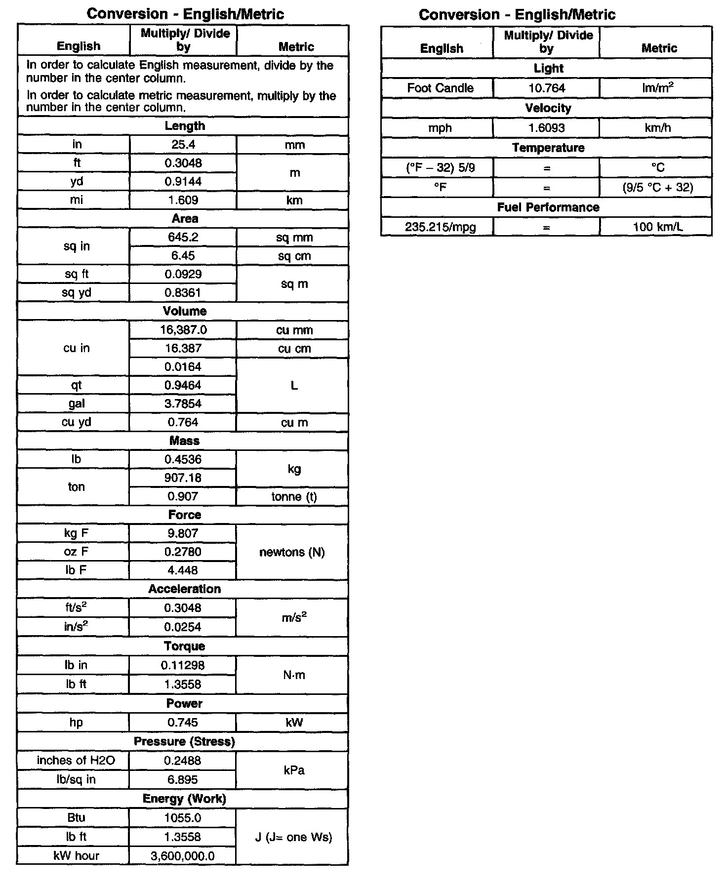 Conversion - English/Metric