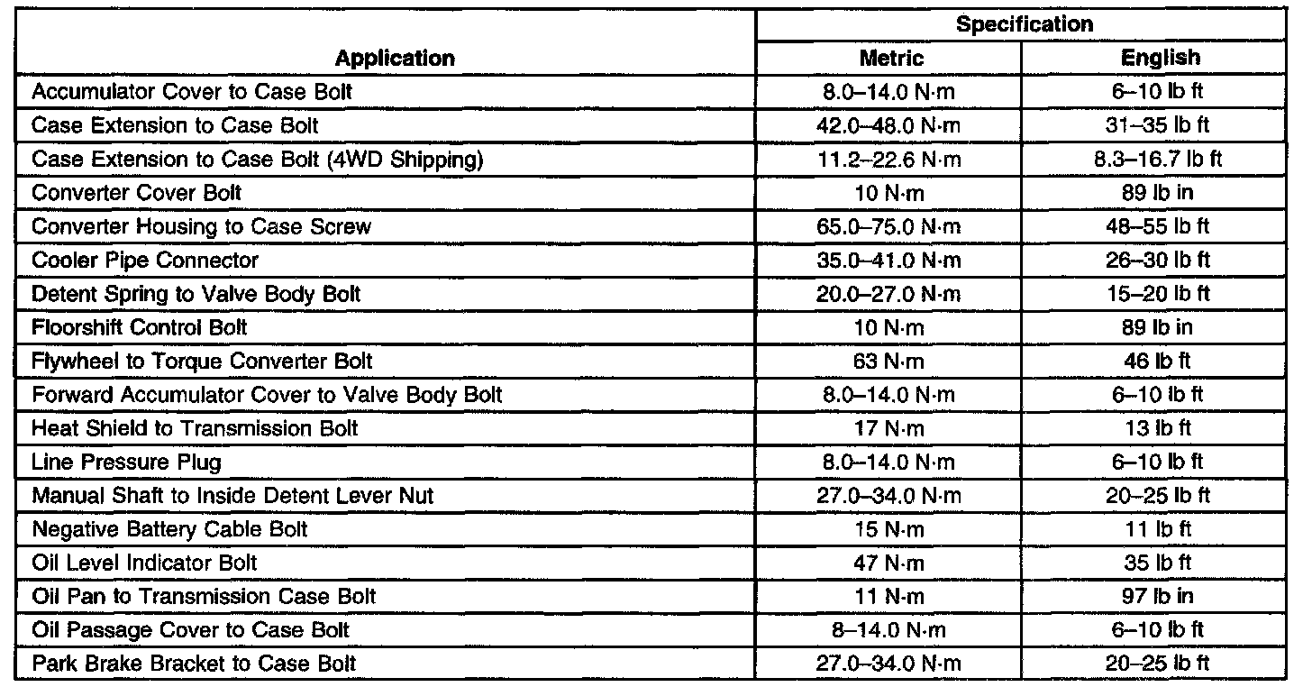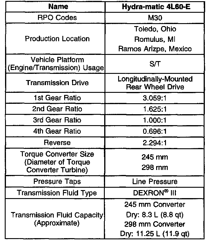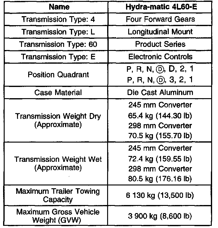 Transmission General Specifications