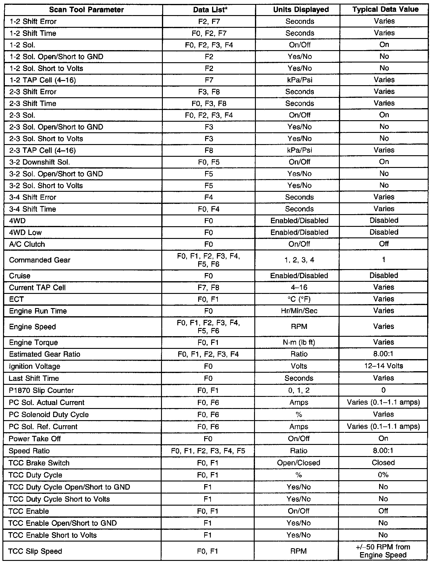 Transmission Scan Tool Data List (4.3 L)Use the scan tool data list under the following conditions: