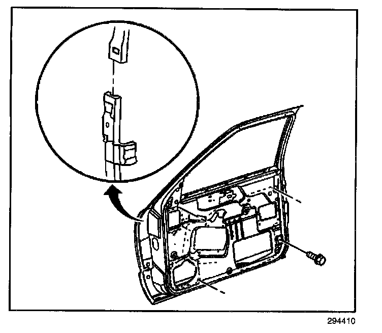 5. Install the bolts that retain the front run channel to the door.