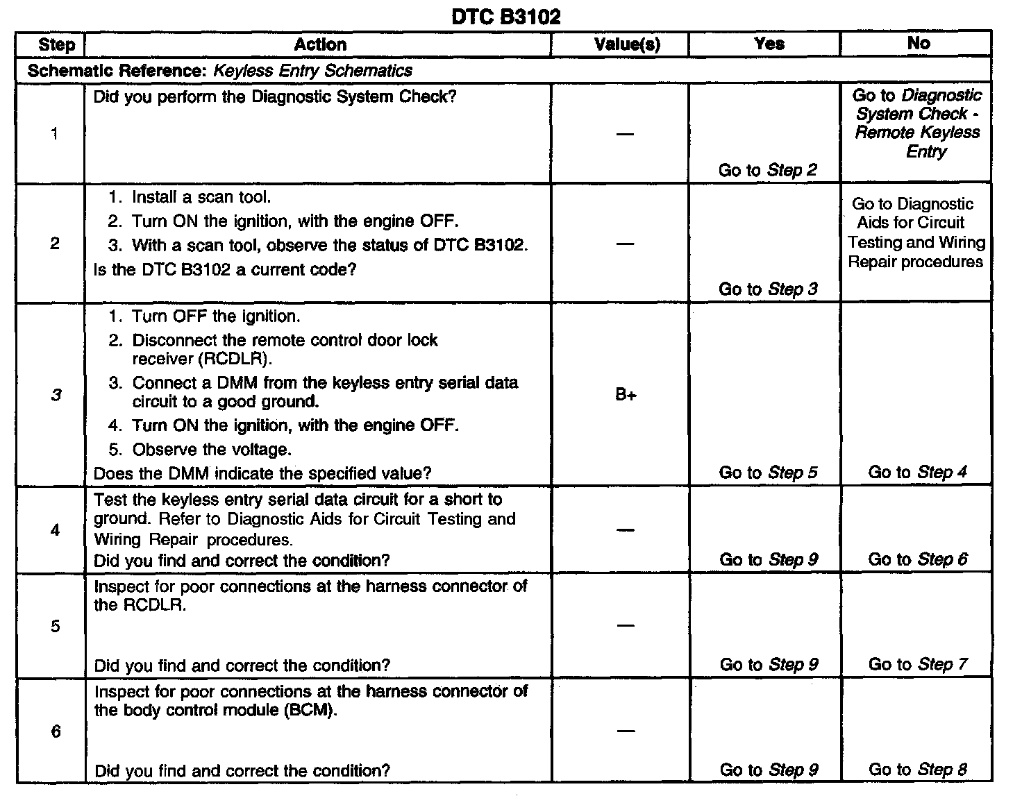 3. This step checks the keyless entry serial data circuit for voltage supplied by the body control module (BCM).