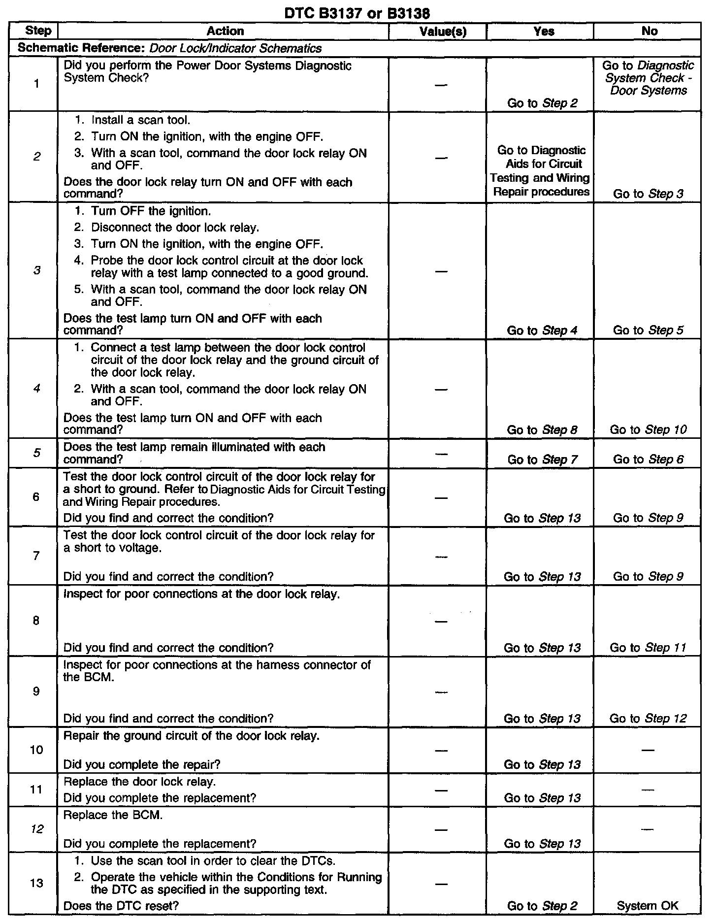 4. Tests for an open in the ground circuit to the door lock relay.