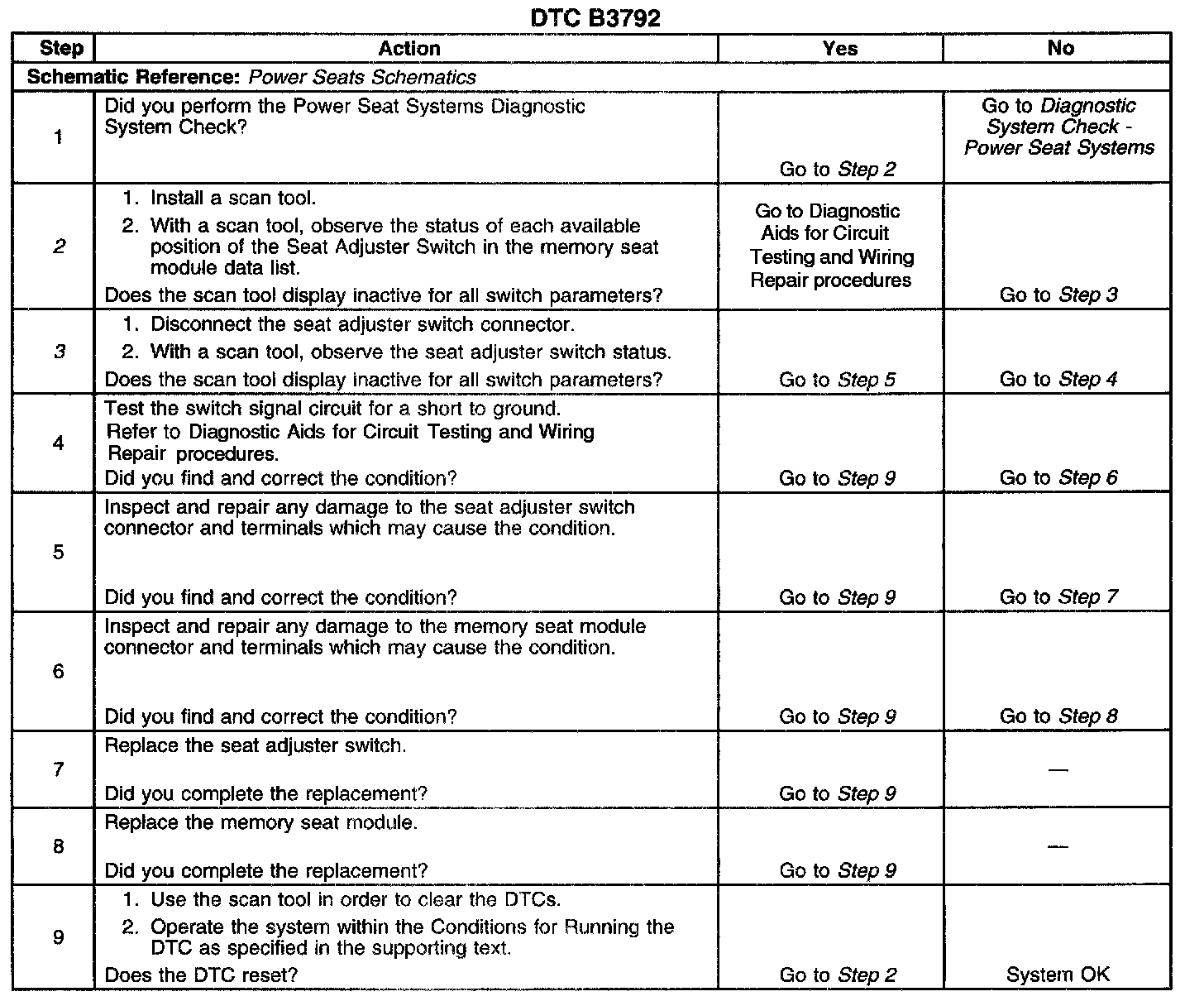 ^ The memory seat module will ignore the switch input for which a current status DTC is set.