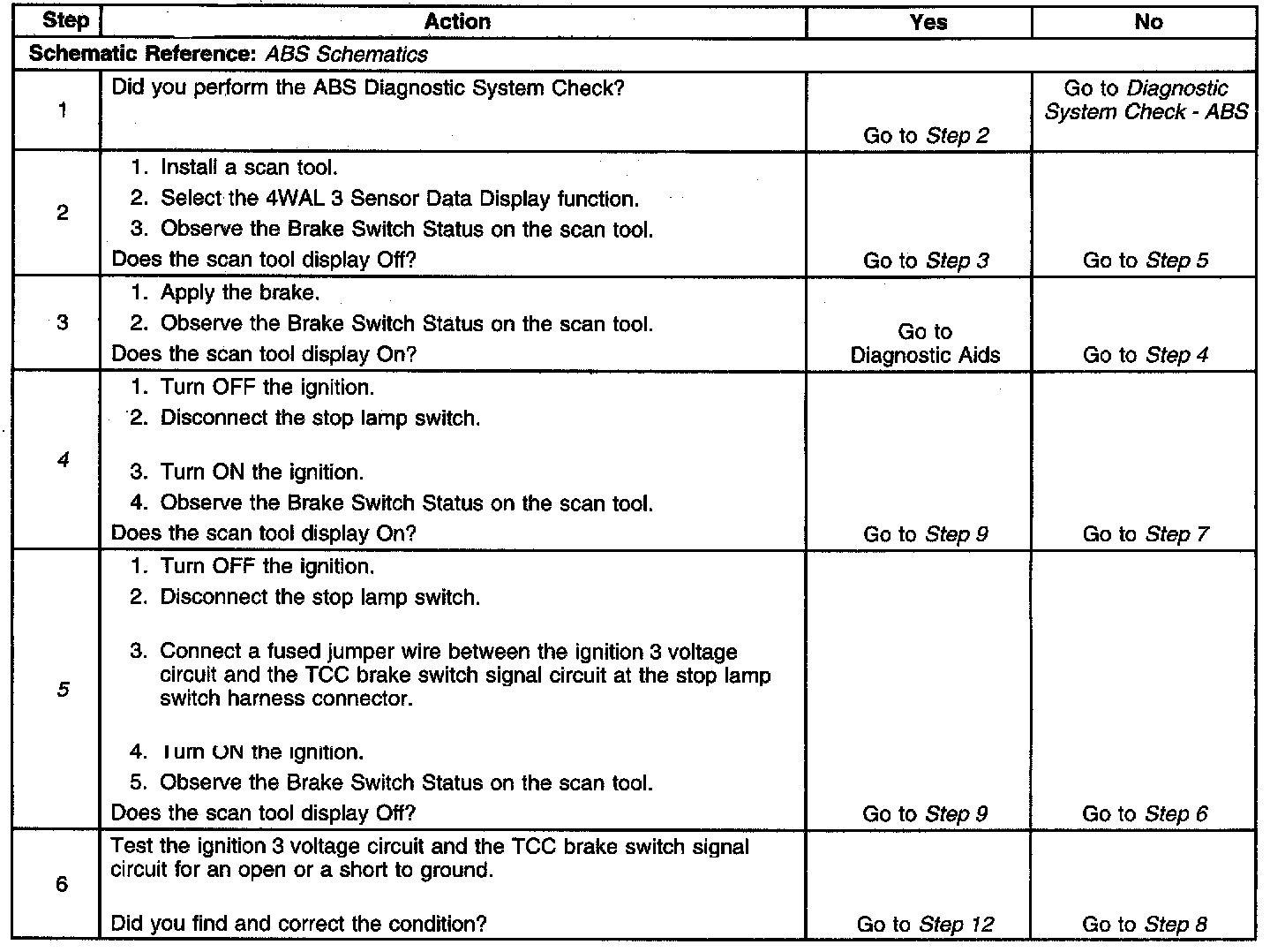 5. This step tests for an open stoplamp switch.