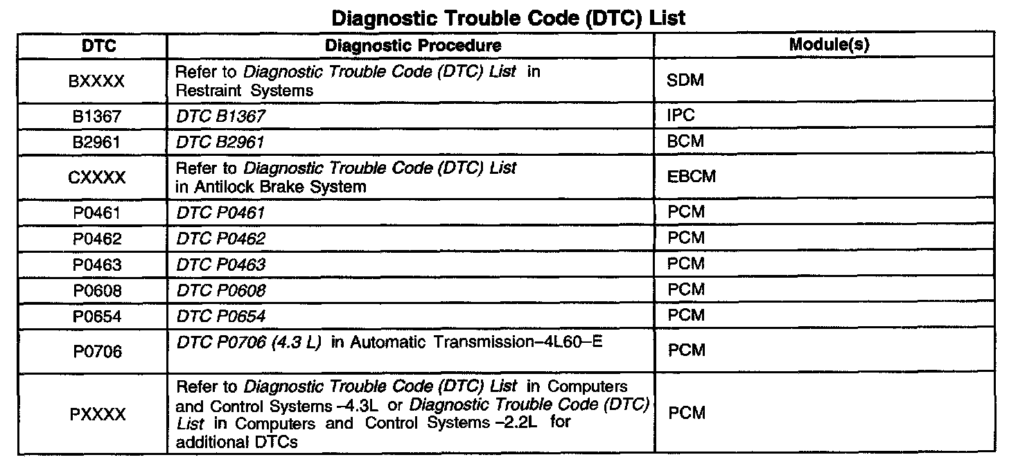 Diagnostic Trouble Code Descriptions