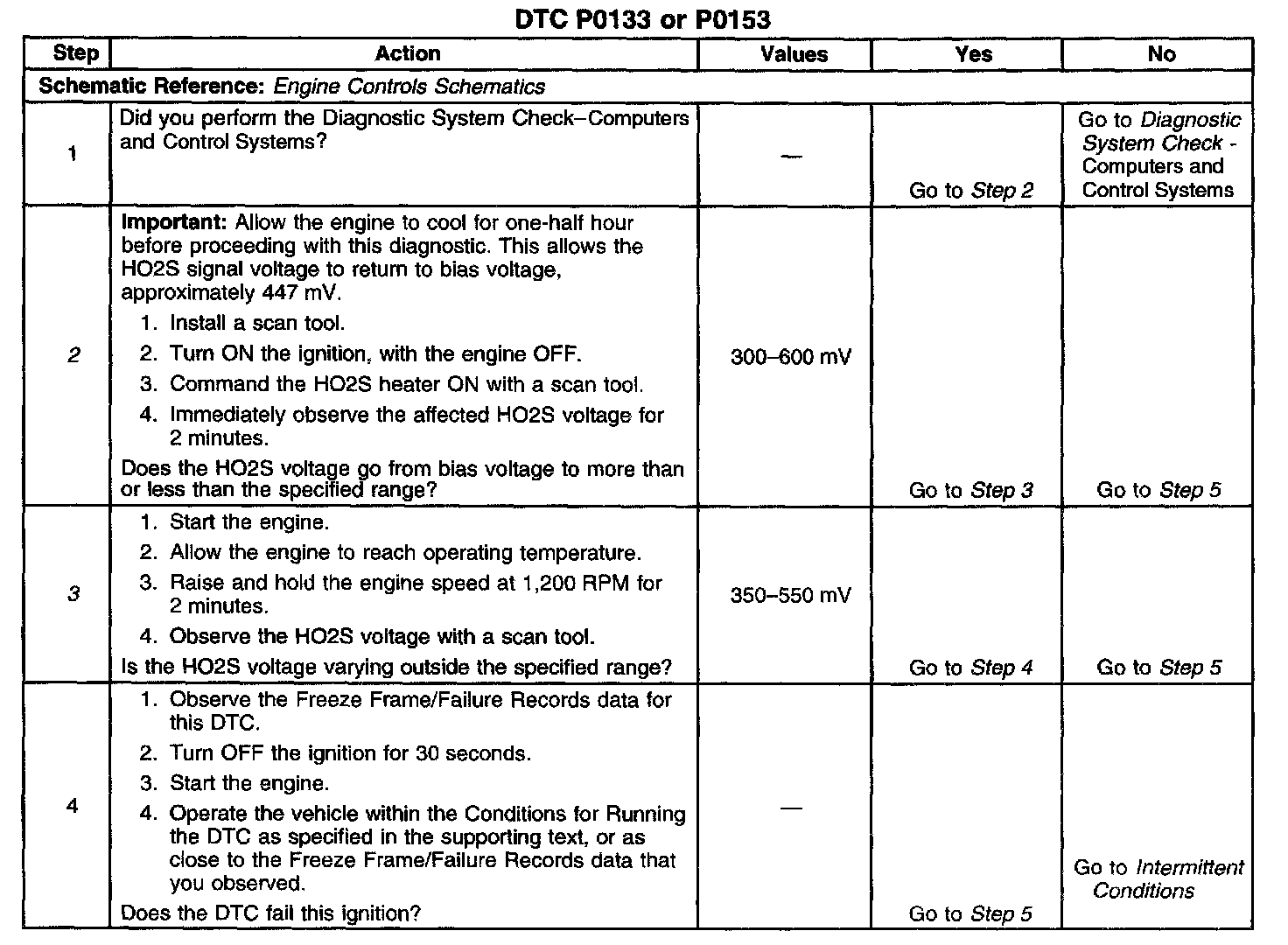 3. If the HO2S voltage is varying outside the specified range, the condition is not present.