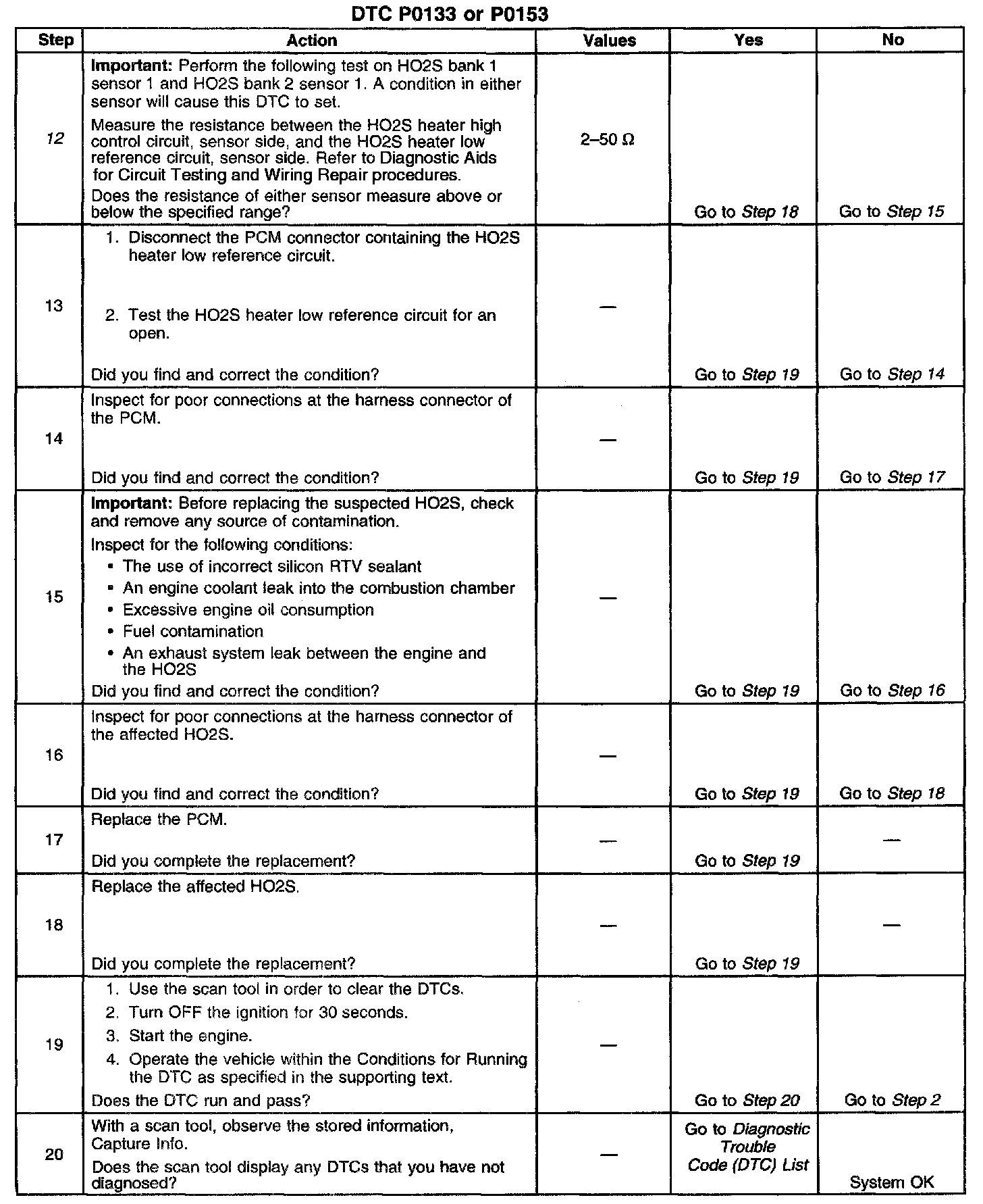 12. Resistance within the specified range indicates the HO2S heater is OK.
