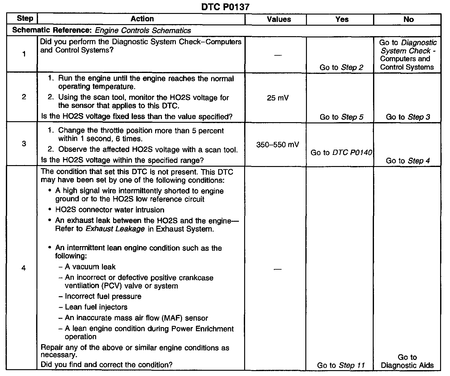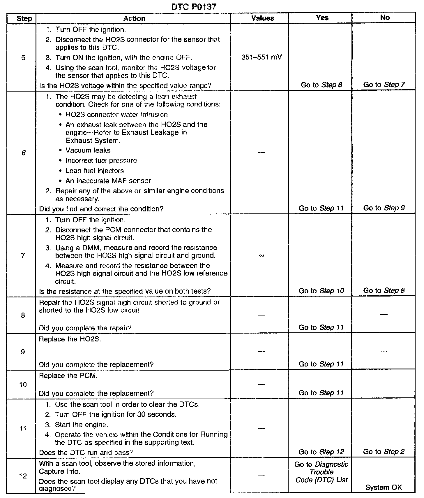 ^ Check for exhaust leaks. An exhaust leak near the HO2S can cause a lean condition. Refer to Exhaust Leakage in Exhaust System. Exhaust Leakage