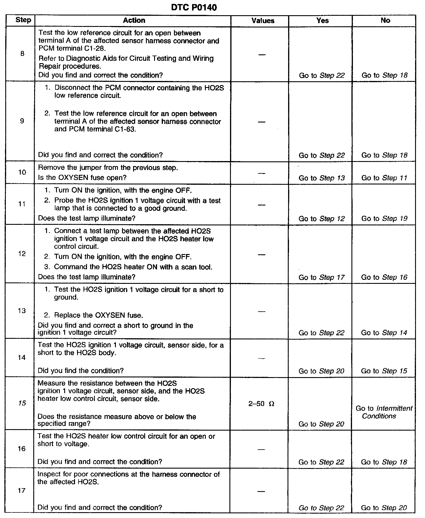 15. Resistance within the specified range indicates the HO2S heater is OK.