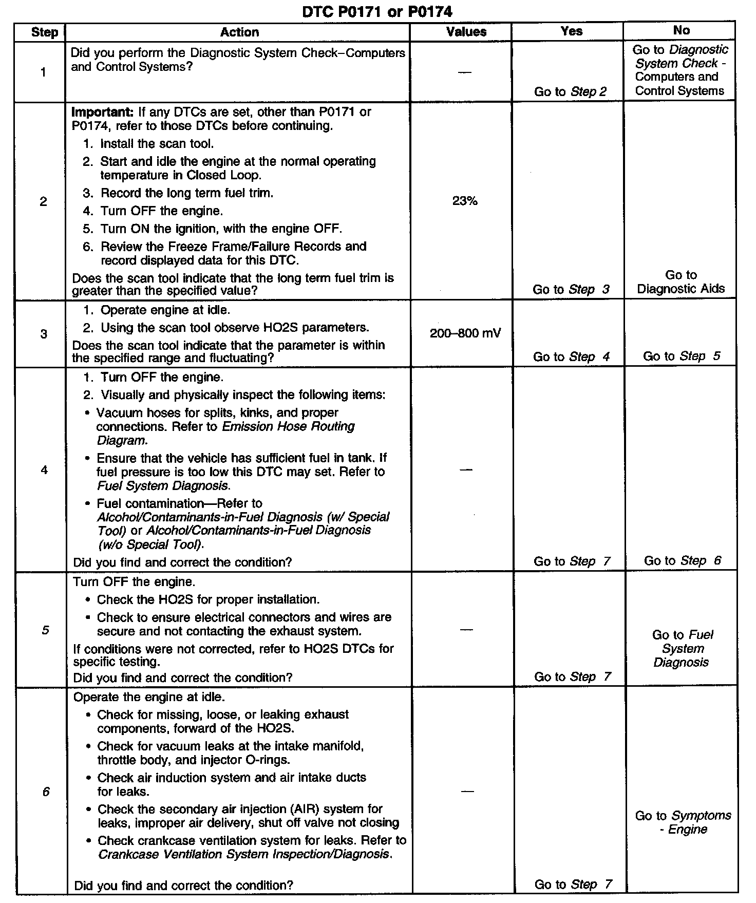 CIRCUIT DESCRIPTIONThe powertrain control module (PCM) controls the air/fuel metering system in order to provide the best possible combination of driveability, fuel economy and emission control. Fuel delivery is controlled differently during Open and Closed Loop. During Open Loop the PCM determines fuel delivery based on sensor signals, without oxygen sensor input. During Closed Loop, the oxygen sensor inputs are added and used by the PCM to calculate short and long term fuel trim, fuel delivery adjustments. If the oxygen sensors indicate a lean condition, fuel trim values will be above 0 percent. If the oxygen sensors indicate a rich condition, fuel trim values will be below 0 percent. Short term fuel trim values change rapidly in response to the HO2S voltage signals. Long term fuel trim makes coarse adjustments in order to maintain air/fuel ratio of 14.7:1. If the PCM detects an excessively lean condition; this diagnostic trouble code (DTC) will set.