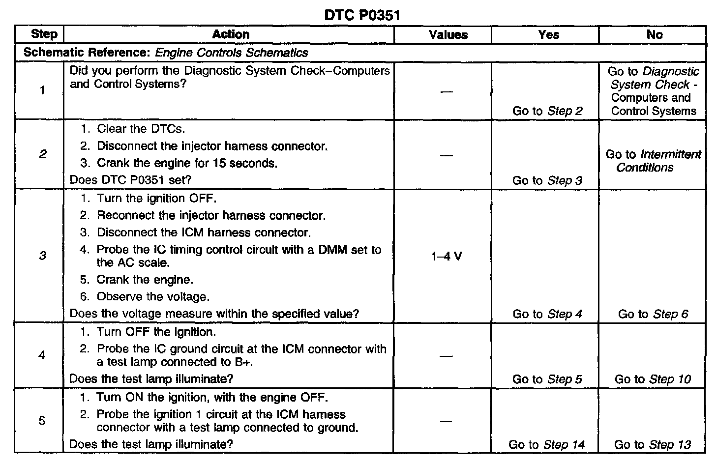 3. This step checks if the IC timing signal from the PCM is available at the ignition control module.