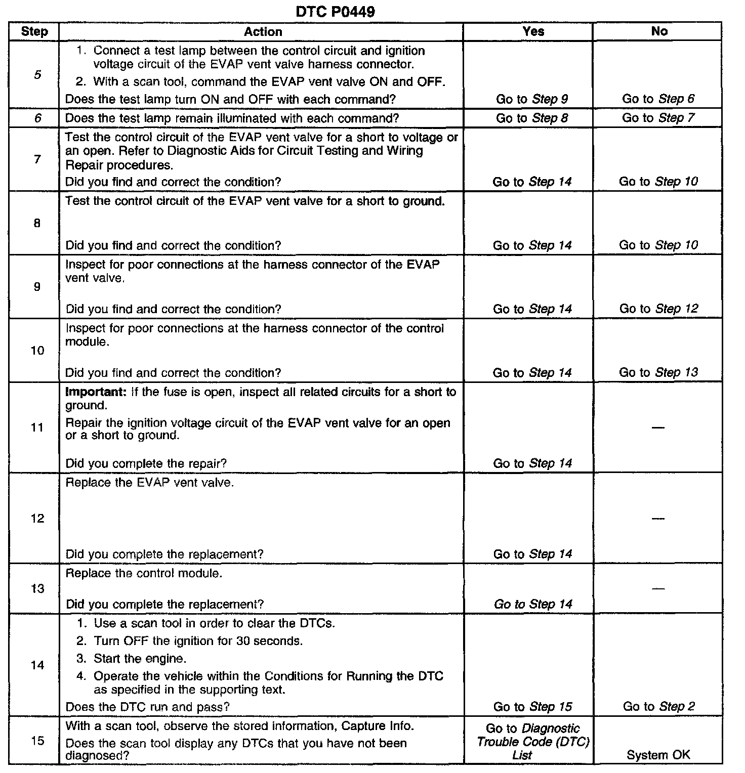6. This step tests if the EVAP vent valve control circuit is grounded.