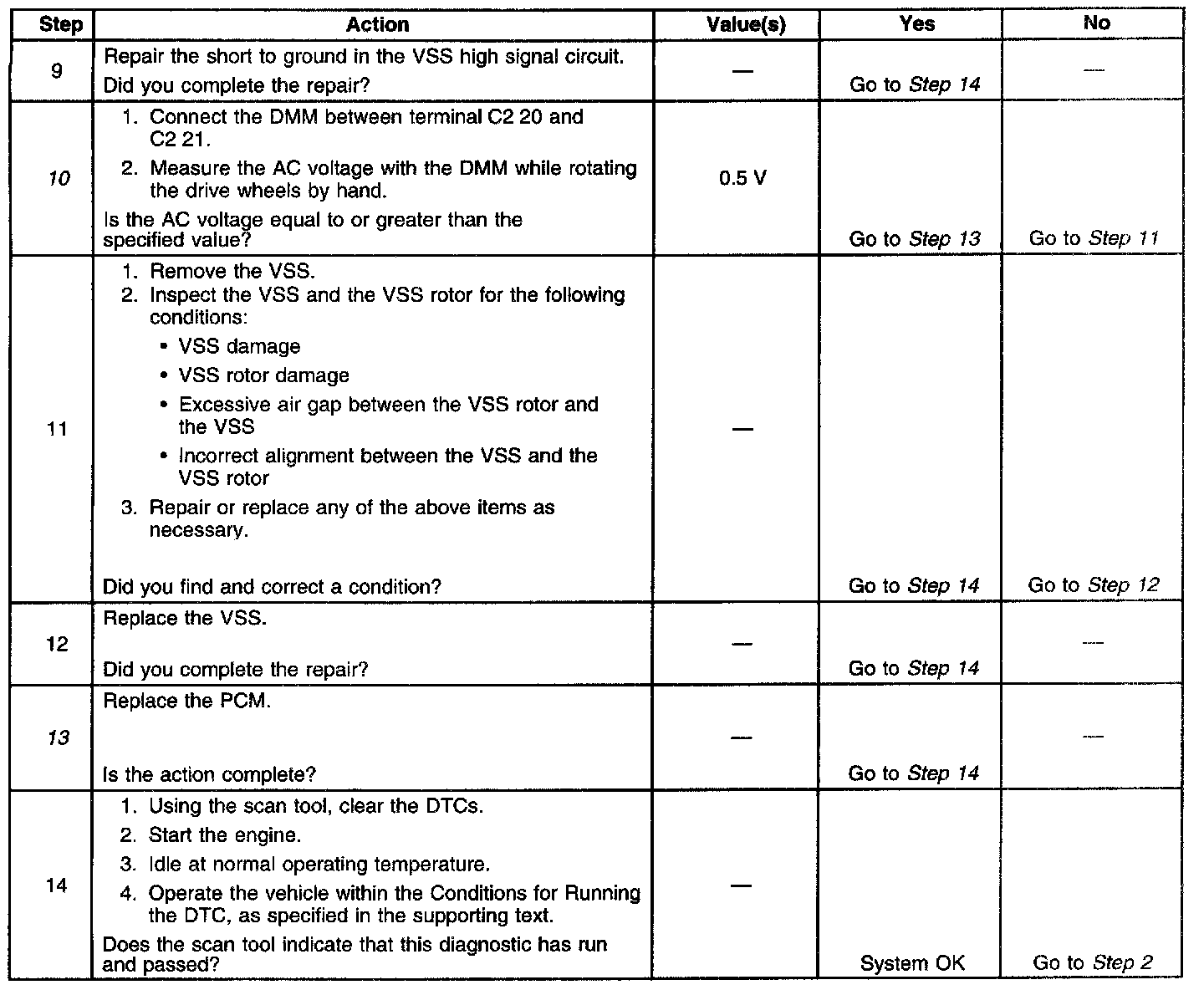 10. Do not skip Step 7. The DMM will detect AC voltage if the VSS high signal circuit is shorted to ground.