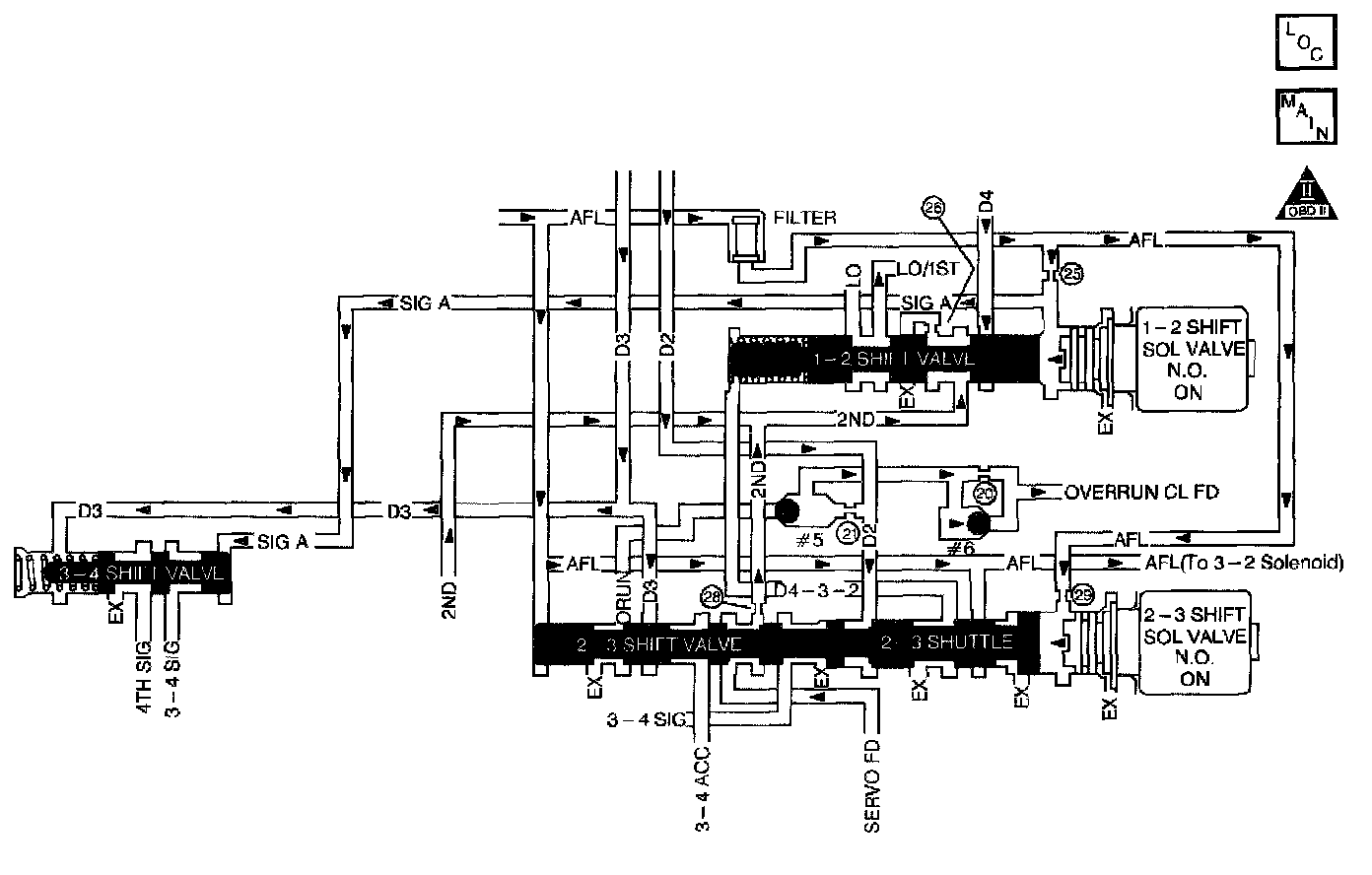 ^ The PCM commands D2 line pressure.
