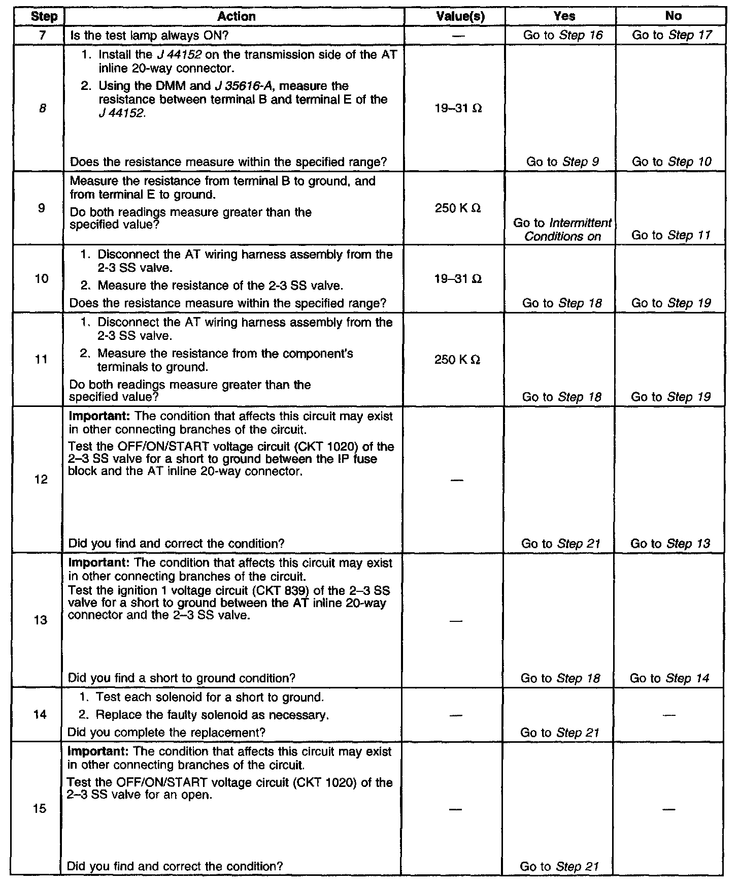 4. This step tests the function of the 2-3 SS valve and the automatic transmission (AT) wiring harness assembly.