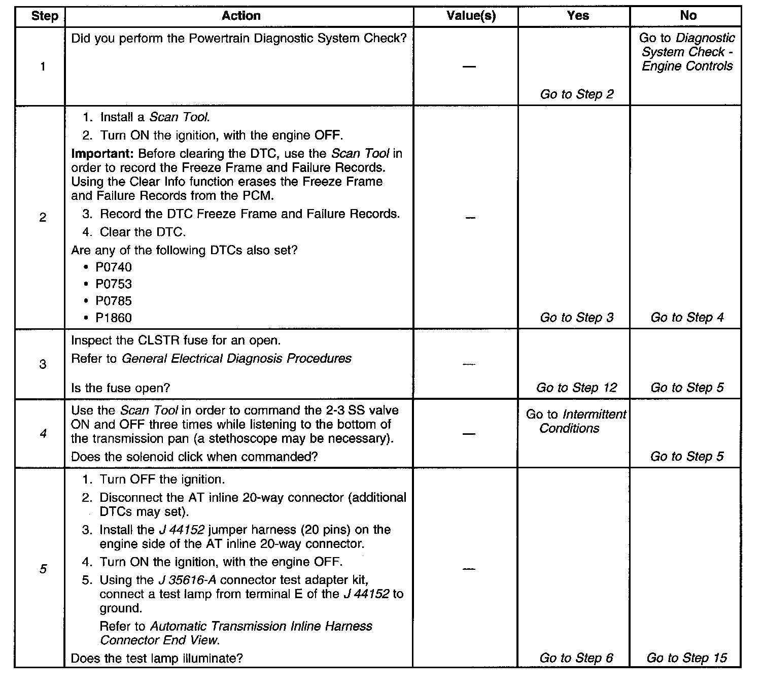 5. This step tests for power to the 2-3 SS valve from the ignition through the fuse.