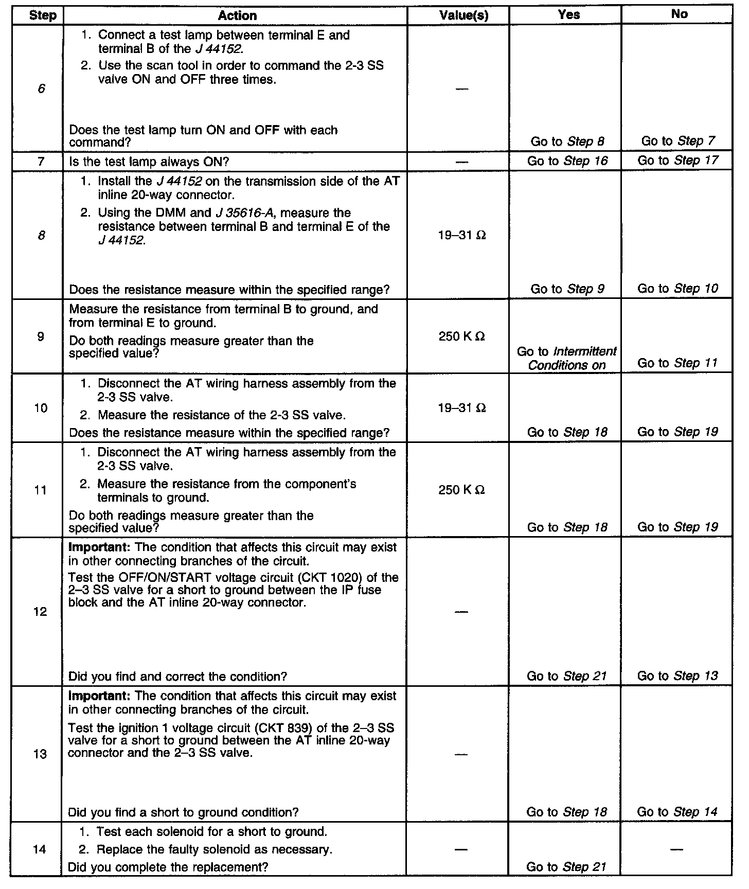 8. This step measures the resistance of the AT wiring harness assembly and of the 2-3 SS valve.