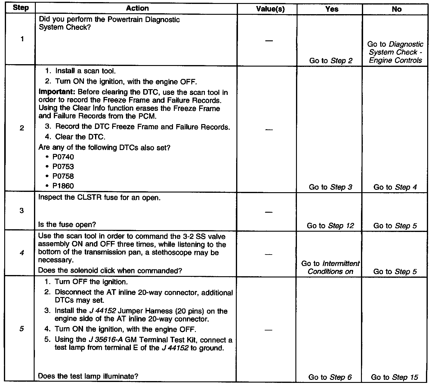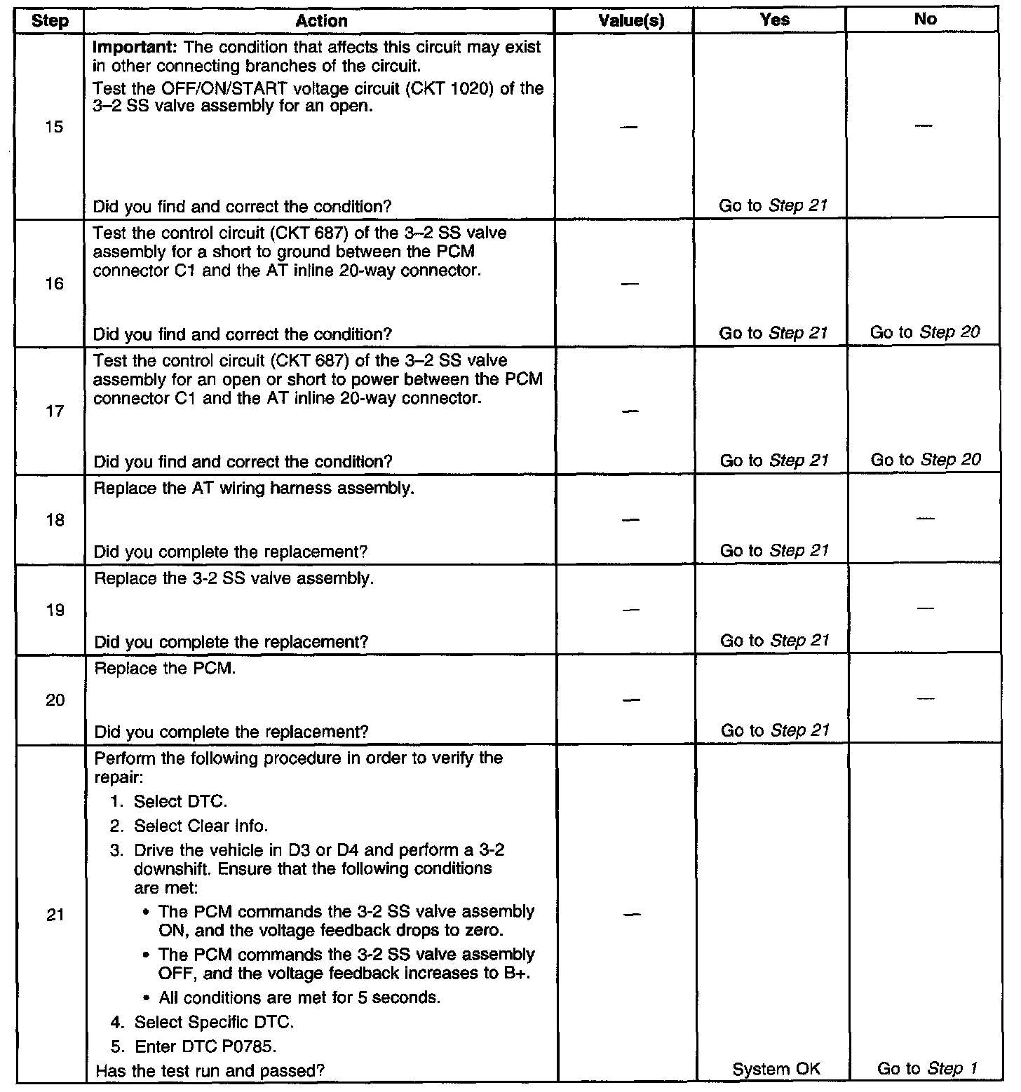 When the PCM detects a continuous open, short to ground or short to power in the 3-2 SS valve assembly circuit, then DTC P0785 sets. DTC P0785 is a type B DTC.