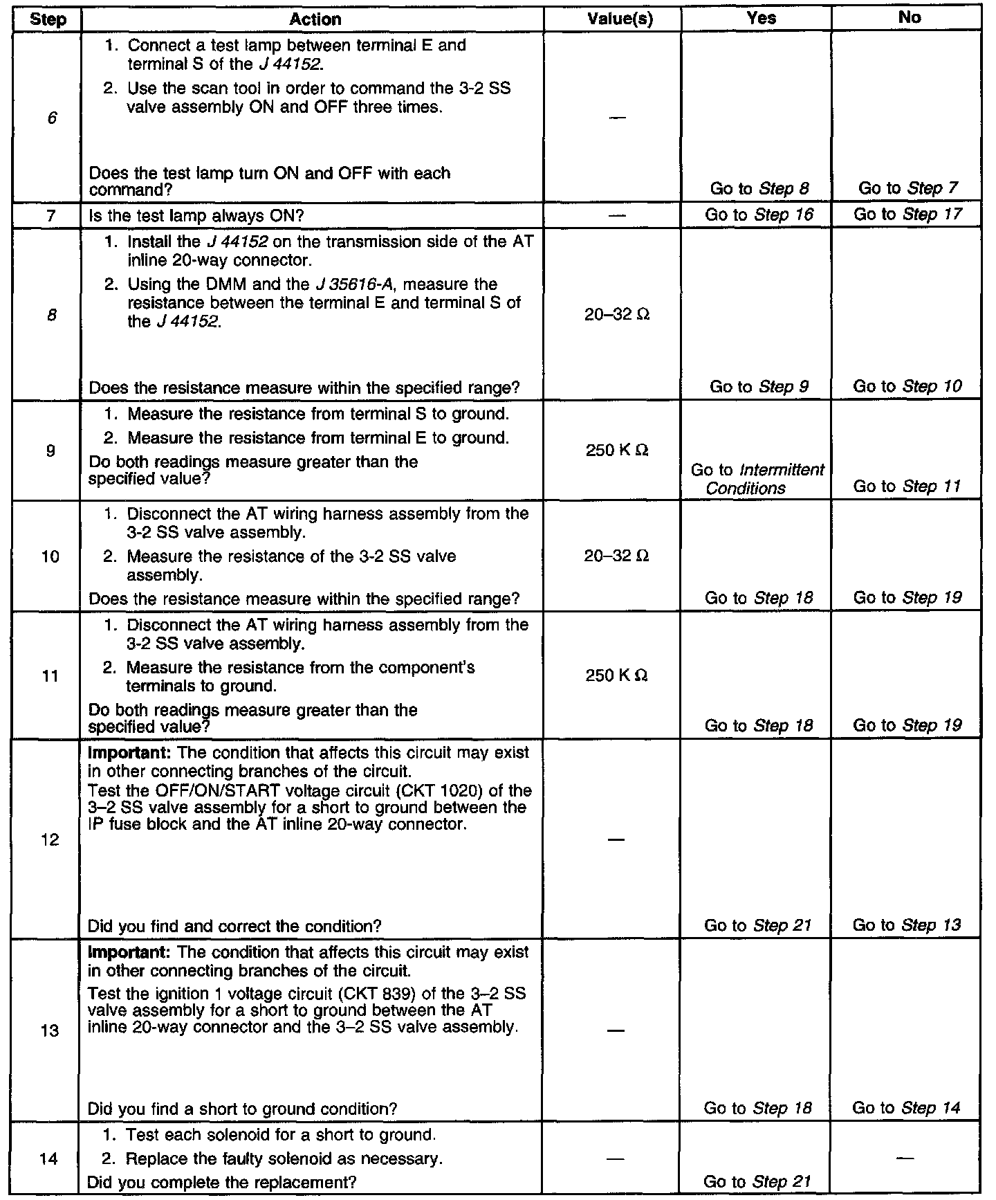 8. This step measures the resistance of the automatic transmission (AT) wiring harness assembly and the 3-2 SS valve assembly.