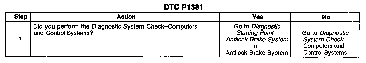 1. Service the ABS before diagnosing for a misfire, because an actual engine misfire may or may not exist. The following 2 examples illustrate how this DTC can be set with or without an actual engine misfire:
