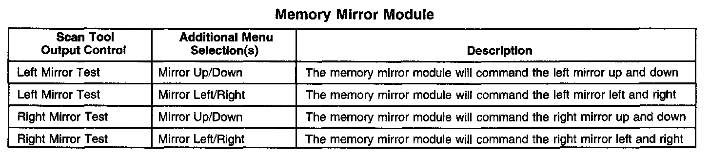 Scan Tool Output Controls - Memory Mirror Module (MMM)