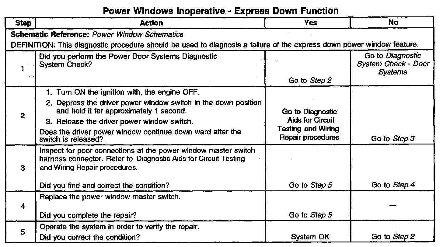 Power Windows - Inoperative - Express Down Function