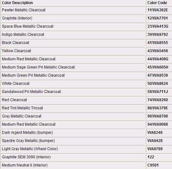 Paint Code Charts