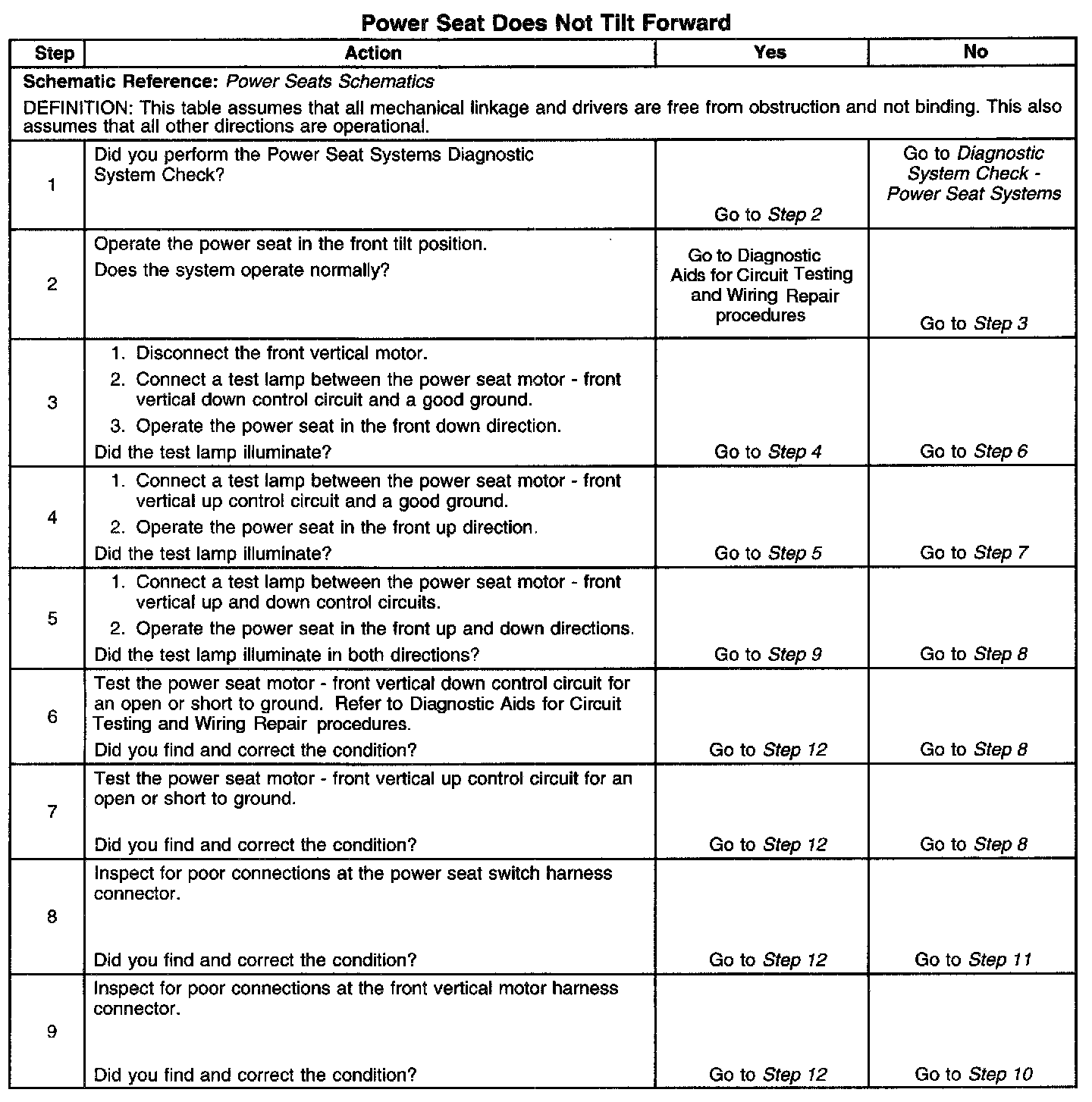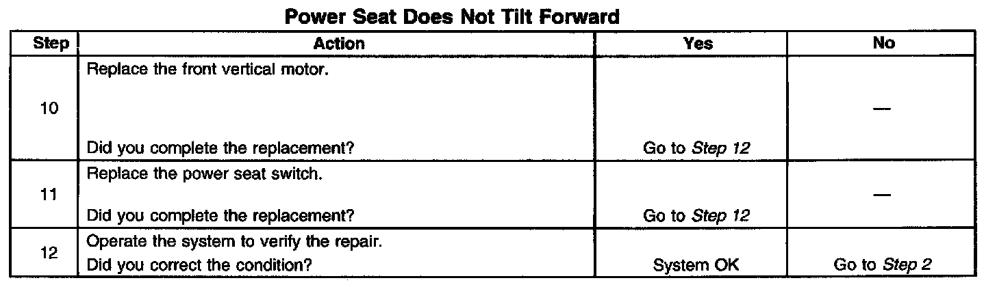 Power Seat Does Not Tilt Forward