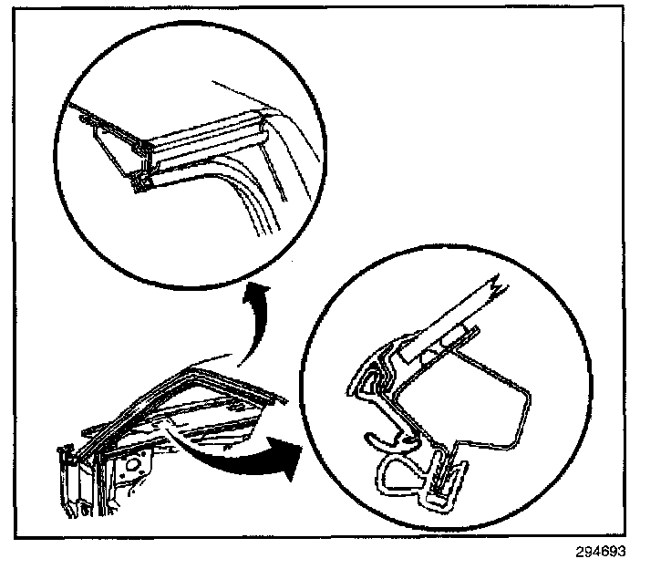 1. Pull the roof drip weatherstrip from the door opening frame.